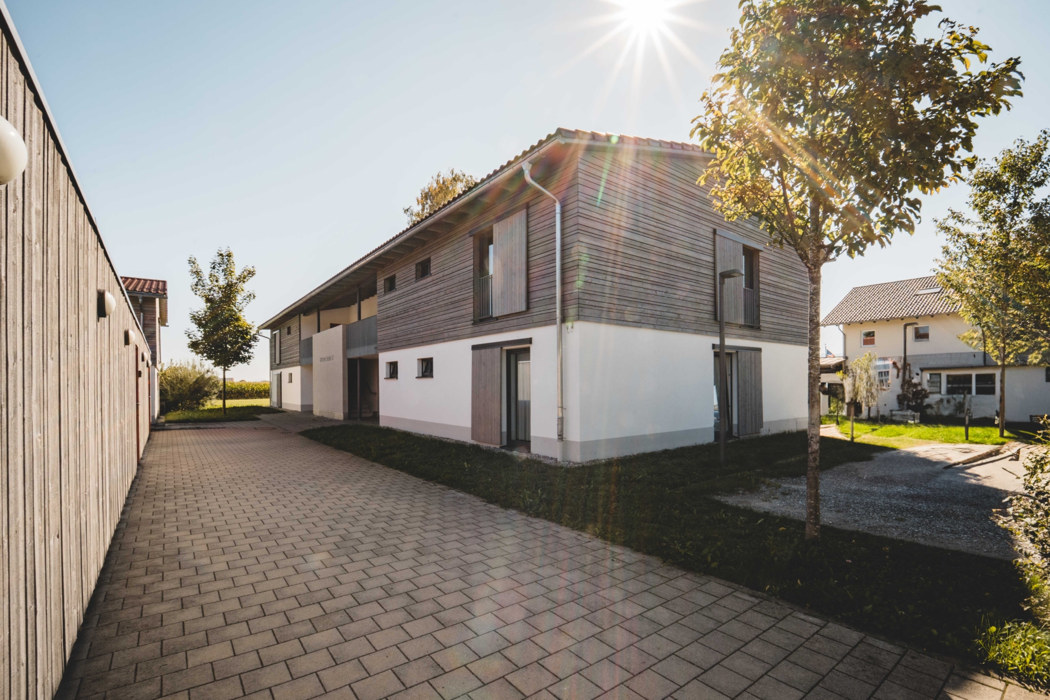 Die Erschließung erfolgt über kurze Laubengänge. Durch die unterschiedliche Ausrichtung der Baukörper ergibt sich ein Mix aus verschiedenen Wohnungsgrundrissen. Der zweite Bauabschnitt erfolgt nach Fertigstellung von Haus 1 und Haus 2 und nach Abriss des Gebäudes „Adlfurterstraße 13“. Die Bauleitung hierfür obliegt unserem Büro.